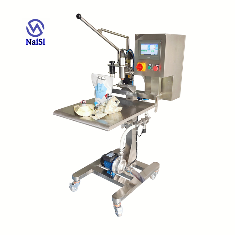 Bag-in-box filling machine is designed for quantitative filling of Bag in box by drawing lessons from French advanced technology. It adopts flowmeter metering mode, filling precision is high and the setting and adjustment of filling volume is very intuitive and convenient. Widely used in wine, edible oil, juice, additives, milk, syrup, alcoholic drinks, concentrated condiments and other materials bag in box filling and capping.